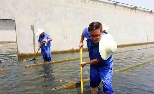 夏日到来,郑州的供水压力陡然增加,为保证市民能够正常用水,6月7日上午,映象网记者在郑州航空港水务有限公司看到,顶着30多度的高温,该公司领导正带领党员干部、青年团员跳入泥水中清洗沉淀池,在骄阳之下,他们个个都是泥水、汗水交织,却没有一个人叫苦叫累。