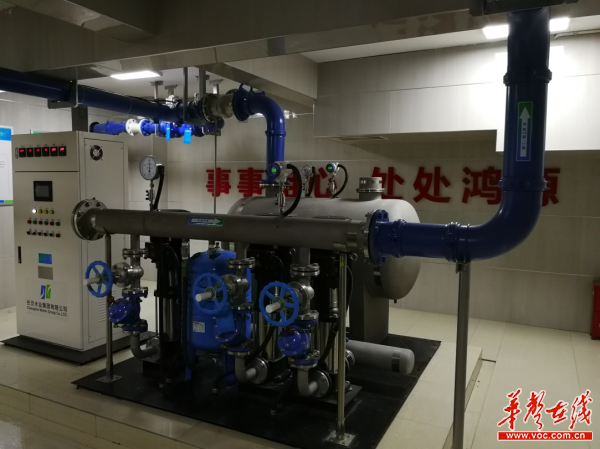 干净整洁的泵房环境,先进的供水设备及严格的管理措施,为用户用水安全保驾护航……记者走进小区地下4层看到,市政供水通过泵房进水管进入泵房设备进行加压,最后将水送至小区用户家中。“二次供水标准化泵房配备的监测系统能实时监控供水的质量,保障居民用水安全”,长沙水业集团鸿源公司副经理李小平表示,小区泵房还配备了人工巡检、视频监控的方式,确保小区的二次供水设备设施正常运行。