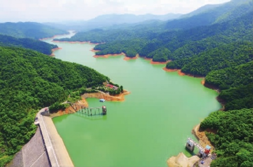 5月14日,浏阳株树桥水库,碧水蓝天、库区沿岸风景秀丽。