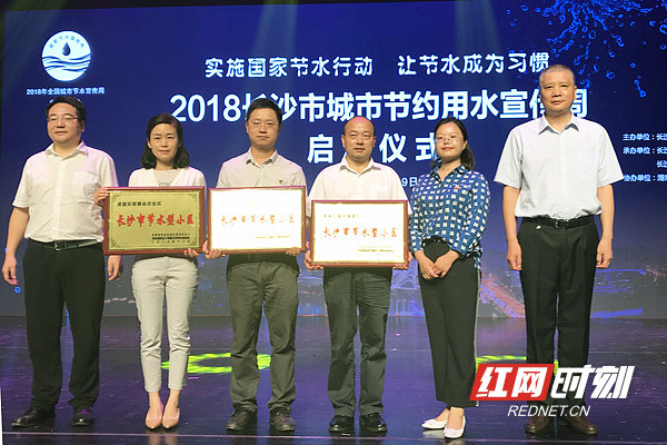 启动仪式上,高新区麓谷锦园小区、雨花区五矿万境水岸小区、岳麓区梅溪湖街道阳明山庄社区获“长沙市节水型居民小区”称号。