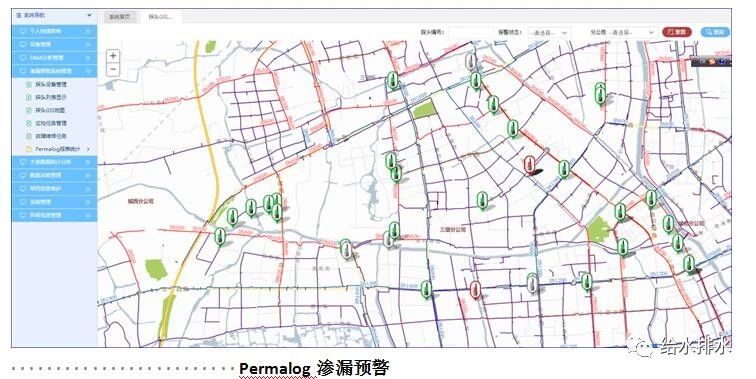 (4)在线预警,安全报供:在管网物理端安装压力、流量、水质、渗漏等测量、感知设备,实时掌控管网关键节点运行情况。智能消火栓系统、Permalog渗漏预警系统等。