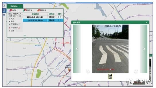 巡查模块以管网主动管理活动为中心,对施工场地、重要设施、路面情况、违章用水等进行“线式”、“点式”管理,计划、巡视、上报、处置、考核等全程管控。平台端做好巡视计划和临时任务,系统按时间自动下派任务范围巡查人员,巡查人员对任务中的内容进行到位巡查或检查,上报情况完成任务。管理人员在平台端对计划完成情况审核和对上报异常情况转发至“维修模块”处理。